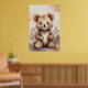 Poster de um ursinho de pelúcia fofo e fofo rodeado de folhagem macia e aquosa que dá uma sensação suave e caprichosa. Tons arrogantes e pinceladas delicadas melhoram a expressão carinhosa do urso.