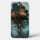 A bela design de capas de iphone criada usando o software de renderização IA apresenta um prédio místico, mágico e fantástico em uma noite iluminada pela lua.