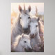 Poster de uma família majestosa de unicórnios em pé perto em meio a um campo de flores silvestres delicadas. A luz do sol suave banha a cena, destacando seus homens e expressões serenas que fluem.