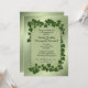 Um belo convite verde com uma videira adulta tem convites de casamento. Coloque os primeiros nomes do casal de um lado com toda a informação do casamento e saudação no reverso. Por favor, verifique triplicamente todo o seu texto.