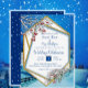 Uma cena de fantasia de inverno azul com um quadro de ouro geométrico é fácil de personalizar para seu anúncio de casamento