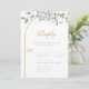 Rosas. orquídeas, uma ervilha, eucalipto e folhas verdes, desenhadas à mão em lápis de grafite e em camadas, fazem um cartão RSVP de casamento moderno, sofisticado, elegante e chic com escolha de refeição, que é uma tomada moderna de uma tradicional coroa de casamento floral. A textura do lápis preto e branco mostra através do lápis, dando-lhe uma sensação de elegância sem esforço. O quadro, um arco, é também uma versão atualizada de um clássico, dando à estrutura design, mas mantendo um senso de frescura moderna.