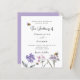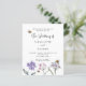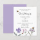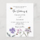 Um fundo branco. Decorado com abelhas e pintado flores silvestres em violeta e rosa. Personalize e adicione seus nomes e detalhes.