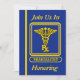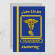 Este convite azul e dourado é decorado à frente com um Farmacêutico caduceus. Você pode personalizar este cartão colocando suas informações nas caixas fornecidas.
