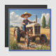 Este cartão de aniversário magnético tem um fazendeiro alegre montando seu trator.