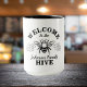 Ponha sua bebida favorita em estilo com esta caneca de café personalizada em um design preto e branco monocromático. Deixe que o padrão de colmeia e abelha e a mensagem de boas-vindas "Bem-vindo à Nossa Colmeia" tragam alegria e calor para as suas manhãs ou a qualquer hora que você desfrutar de uma bebida quente. Quer seja para si mesmo ou como presente personalizado, esta caneca é uma forma perfeita de criar uma experiência confortável em café. Design inclui o material de direitos autorais do Cricut.