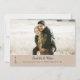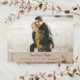 Um design de diversão rústico com um tipo de farol desenhado à mão num tema de cor azul e branca. A textura de fundo Kraft clara é uma imagem e é opcional e há um espaço reservado para sua foto especial. A parte de trás tem listras. O texto está em azul e preto com script de pincel moderno, cores e fontes são personalizáveis.