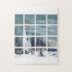 Este quebra-cabeça de serra de vaivém foi criado de uma pintura pelo artista Terri Meyer de Ohio intitulado "no espírito do feriado em Marblehead". A cena descreve uma vista de Marblehead de uma janela paned com neve e de um boneco de neve que guardara uma bandeira dos E.U.