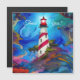 Belo farol vermelho e branco listrado em um entorno rochoso cercado por ventos coloridos e águas turvas AI Arte criada por minx267