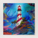 Belo farol vermelho e branco listrado em um entorno rochoso cercado por ventos coloridos e águas turvas AI Arte criada por minx267