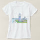 Farol Roxo Desenhado na Mão Original; Camisa feminina; Vida na Praia no verso