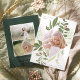 Elegante cartão de foto de férias para fotos verticais apresenta sua foto rodeada por uma borda geométrica de folhagem botânica verde exuberante e pequenas bagas de azevinho em aquarela vermelha. "O céu e a natureza cantam" aparece no canto superior esquerdo em letras cinzas, com o nome da sua família no canto inferior direito. Personalize o verso com duas fotos adicionais e uma mensagem pessoal.
