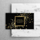 Uma mistura divertida de falsos pontos de confete de ouro metálico adoraria este design cartão de visita preto moderno e elegante. © 1201AM CREATIVE