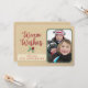 Envie desejos de férias para casa com este acolhedor creme, vermelho e verde suave. Projetado para parecer um feltro bordado à mão com um detalhe de botão vermelho, ele imita um estilo quente e charmoso. Substitua a foto de exemplo por sua e personalize a frente com sua mensagem e assinatura usando os modelos fáceis fornecidos. A mensagem "Sentido costura" na frente diz "Desejos Quentes" em creme e vermelho, seguida de um esférulo estilizado de sagrado por baixo. O verso também pode ser personalizado com sua mensagem de feriado ou vazio esquerdo para que você possa incluir sua própria mensagem manuscrita mais tarde!