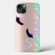 Lâmpadas falsas, pingos de arco-íris, e seu monograma em um fundo de ouro rosa.
