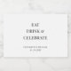 Rótulos de mini garrafa de licor modernos e simples para as lembrancinhas da sua festa de casamento com "Comer Beber & Celebrar", seus nomes e a data do seu casamento em tipografia elegante.