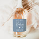 Comece a festa com esses rótulos de vinho espumante. Design apresenta "sip sip hooray" junto com um coração e seu nome de evento em letras brancas em um fundo azul empoeirado. Perfeito para festas de solteira, garotas nos fins de semana e muito mais.