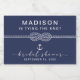 Rótulos de garrafa de vinho cintilante azul marinho com tema náutico para chá de noiva. "está amarrando o nó" com arte de uma corda em um nó com âncora. Ótima ideia para favores.