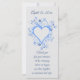 Este é um pequeno cartão de guardas de casamento seria bom colocar em cada mesa como um favor de convidado. Exprime o apreço da noiva e do noivo pela presença. A design é um quadro cardíaco romântico com o nome do casal de casamento na frente. O coração aberto é azul-céu. O coração é elaborado com duas flores diferentes. A maior flor de pétalas é azul pálido. A flor em forma de estrela menor é azul real. Há grama graciosa curvando em espirais bonito junto com folhas minúsculas. O texto no verso tem um obrigado para você. Você pode apagar o coração no verso e carregar uma foto do casal se quiser. Você pode alterar todo o texto para personalizar. A cor de fundo também pode ser alterada. Outros itens com este design estão disponíveis também na coleção "Love" em minha loja.