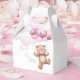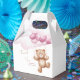 Favor Caixas para o chá de fraldas decorado com um adorável ursinho de pelúcia voando sobre balões nas nuvens.