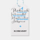 Favoritos funerais. As etiquetas memoriais podem ser amarradas a coisas ou entregues aos hóspedes como um favor ou um pequeno presente.