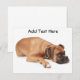 Purebred boxer em repouso com área de texto personalizada para personalizar.