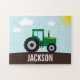 Este quebra-cabeça de trator personalizado divertido é perfeito para o trator ou para a criança amante da fazenda na sua vida. Este quebra-cabeça apresenta um trator verde e amarelo divertido com um sol amarelo brilhante e algumas nuvens brancas indefinidas. Personalize com o nome do seu filho e você terá um tesouro nos próximos anos.