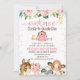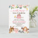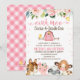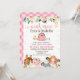 Fazenda Floral de Casca Rosa Aniversário Convite fazenda de Fogueira Fita Convite de aniversário Cuta, com a inscrição de um cavalo, suíno, bovino e ovino, bem como arranjo floral e celeiro rosa. Este design de convite é uma maneira fofa de definir a cena para a festa de aniversário de uma garota temática fazenda.