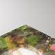Mulher jovem em um jardim duplamente exposta com um dandelion. Faça um desejo!