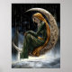 **This beautiful POSTER features a mystical Moon Keeper resting within a crescent moon, surrounded by celestial details and dreamlike textures.