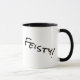 Feisty! escrito em fonte negra e moderna. Este design está disponível em vários tamanhos, estilos e cores, mas ele é melhor em uma caneca clara para que o texto preto seja pop! Este design está disponível em vários tamanhos, formas e cores de alça/dentro. Se você escolher uma opção diferente da mostrada, certifique-se de visualizá-la antes de fazer o pedido - apenas para ter certeza de que deseja a alteração.