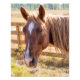 Esta fotografia de um cavalo marrom com marcas brancas mostra a luz do sol fluindo através do seu homem. A luz dá ao cavalo e à cerca no fundo um brilho de ouro. A foto perfeita para qualquer amante de cavalos.