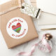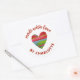 Um adesivo "Made with love" personalizado com um coração vermelho e verde pintado sobre fundo branco colorido. Divertido por embrulhar presentes de Natal caseiros. Faça-o seu adicionando seu próprio nome. Um bonito toque final para todos os presentes feitos à mão. Projetado para você pelo Blackberry Boulevard.