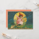 A lua de cheio está lá fora e há uma bruxa de menina fofa voando sobre isso! Este impressão de Halloween, vintage, retrata uma menina vestida como uma bruxa voando com seu gato preto. As estrelas e a lua de cheio estão presentes para iluminar o voo da hora das bruxas.