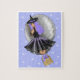 A bruxa roxa voando em um quebra-cabeça de lua cheio. A ilustração apresenta uma bruxa com cabelo roxo e saltos. A design também apresenta uma lua de cheio prateada e estrelas. Bela quebra-cabeça de Halloween. Adicione esta design aos seus jogos da família das bruxas do Halloween. Excelente para dar a irmãs, amigos ou crianças durante o mês de outubro.