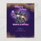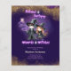 Feiticeiro Whimsical e mágico e Bruxas divertidas para o evento de aniversário de crianças. Texto modelo ambos os lados. Exibir a coleção de itens correspondentes para tornar este evento maravilhosamente mágico.