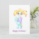 Felicidade bonita abraça com um brinquedo. Menina linda de cabelos vermelhos abraçando um coelho azul de pelúcia. A ilustração da aquarela foi desenhada e digitalizada. Lírios de aquarela feitos ao ar livre em 2023. A imagem será um bom presente e uma decoração interior maravilhosa.