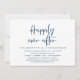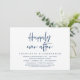 Cartão de convite de casamento fugitivo temático, com letra cursiva azul naval moderna (Felicidade eterna). É perfeito para o seu jantar casual de casamento fugitivo e dança / festa.