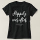Faça uma declaração com esta camisa de casamento personalizada! Com a frase "Felicidade para sempre" em uma fonte de letra elegante, este modelo pode ser personalizado com os nomes dos noivos, data do casamento, local ou qualquer texto que você escolher. Um presente atencioso e elegante que a noiva vai amar! Cores impressas: branco no preto.