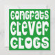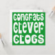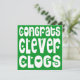 Uma mensagem de parabéns com humor com esta grande e ousada tipografia felicita Clever Clogs em uma fonte branca funky com motivos cardíacos em um fundo verde. Personalize facilmente a sua mensagem no sentido inverso. Você também pode alterar o plano de fundo verde para outra cor se desejar, bem como a fonte e a cor da saudação no verso, por meio da opção Personalizar Mais.