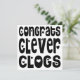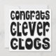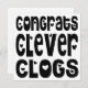 Diga aos parabéns alto e claro em estilo engraçado para o formando ou a qualquer um que seja felicitado por esta grande tipografia ousada felicita Clever Clogs em uma fonte negra e funca com motivos cardíacos. Personalize facilmente a sua mensagem no sentido inverso. Você também pode alterar o fundo branco para outra cor se desejar, bem como a fonte e a cor da saudação no verso, por meio da opção Personalizar Mais.