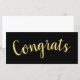 Este elegante design festivo apresenta grandes "Parabéns" centrados escritos em um texto festivo, elegante e quente, amarelo. O fundo desta design moderna minimalista é o negro rico e profundo.