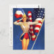 4 de julho, Cartões postais do Dia da Independência com uma ilustração da revista de pin-up dos anos 50. Cartões e presentes disponíveis no Holidays / 4th de julho Categoria da nossa loja.
