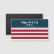 Deseje aos seus entes queridos um Feliz Dia da Independência com este Feliz Cartão Magnet de 4 de julho de 2010, Patriótico Bandeira Americana. A frente da placa de ímã tem uma bandeira americana moderna vermelha, branca e azul como a design tem a saudação "Happy 4th of Julho" em letras brancas em faixa azul escura com três estrelas. Tem listras vermelhas e brancas na área inferior. Sua assinatura "de" nome ou nome da família está abaixo das estrelas.