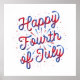 Feliz Poster de 4 de julho, que ilustra a fita e o roteiro de letras que representa o aniversário de independência da América de 1776. Pode ser um presente para aniversários, aniversários ou feriados para um amigo ou família. Criado com uma letra e ilustração desenhadas para aqueles que adoram Estilos Únicos e Novidade! Desenhado por Katrina Sutton.