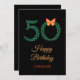 Elegante cartão de aniversário de 50 anos. Perfeito para enviar suas saudações por ocasião da comemoração do quinquagésimo dia. O cartão contém 5 e 0 dígitos feitos de folhas verdes e borboletas de laranja ouro no fundo preto. A parte traseira da placa apresenta borboleta. Você pode personalizar facilmente o nome e a saudação usando ferramentas online do Zazzle. Se precisar de ajuda na personalização deste cartão, não hesite em contactar-me através do Zazzle.