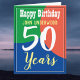 Comemore um aniversário com um cartão personalizado mostrando o nome do destinatário e o número de anos. Adicione seu próprio dentro de mensagem pessoal também. 50 anos.