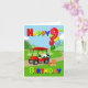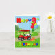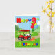 Ampliando a cena do aniversário, um carrinho de golfe vermelho brilhante traz entusiasmo e alegria! À frente, senta-se um bolo festivo com tema de golfe, enquanto as costas estão empilhadas com presentes coloridos e balões saltados com um balão gigante número 9. Com um texto de cor primária ousado, este cartão é perfeito para celebrar o dia especial de um menino.