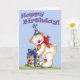 Um ursinho feliz e presente de aniversário feliz com um envelope correspondente.