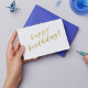 NewParkLane - Cartão postal elegante, com o desejo 'Feliz Aniversário' em tipografia de roteiro de folha de ouro falso elegante.
